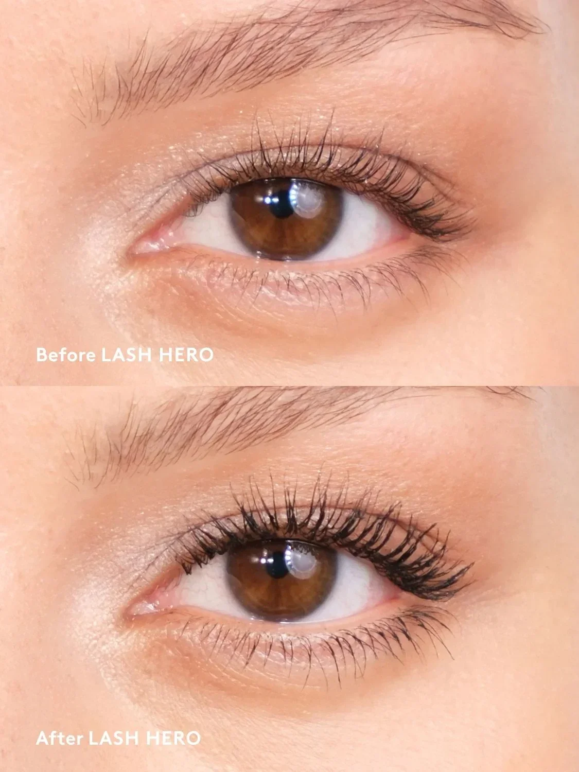 Niet voor niets heet hij Lash Hero! Deze smudge-proof tubing mascara doet het allemaal: hij geeft zichtbaar meer volume, lengte, definitie én lift — en blijft de hele dag perfect zitten. Het hourglass-vormige siliconen borsteltje grijpt elke wimper en zorgt voor een liftend, open effect met mooi gescheiden wimpers.
